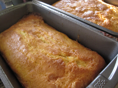 We are having a dinner guest tonight, so I decided a dessert was in order. These Vanilla Buttermilk Pound Cakes are a very simple recipe from Cooking Light. The recipe doesn't call for "a pound" of anything (i.e. butter), so it doesn't have that same incredibly moist center, but it does taste quite good, and it smells heavenly. It is supposed to make 6 mini loaves, but I adapted it to make 2 standard loaves, which may account for the slight dryness on the inside. I am going to serve it with fresh strawberries, for a light, summer dessert. Next time, I want to make this in a pan that makes pretty, mini bundt cakes. I've been looking for an excuse to buy a mini bundt cake pan!